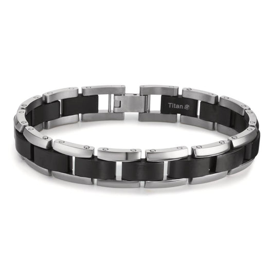 Bracelet Acier inoxydable, Cuir Agate noir 21-22 cm