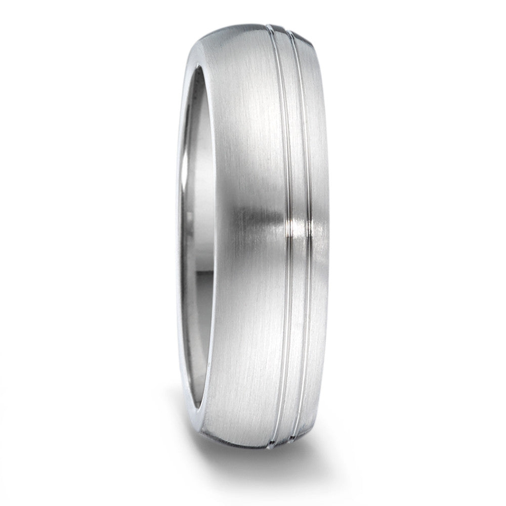 Alliance en acier inoxydable au design élégant et moderne. Cette bague de couple offre un fini mat raffiné avec deux fines lignes polies au centre, symbolisant l'union parfaite. Durable, confortable et idéale pour célébrer un engagement sincère.