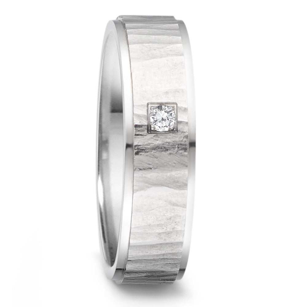 Alliance féminine en acier inoxydable au design moderne avec surface martelée unique. Ornée d’un diamant étincelant, cette bague symbolise l’amour durable et l'élégance. Un choix parfait pour célébrer un engagement ou un lien spécial. Confortable et résistante pour un port quotidien.