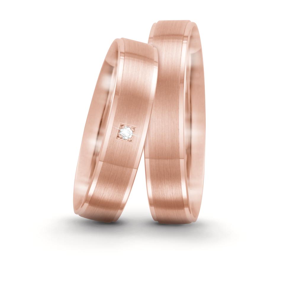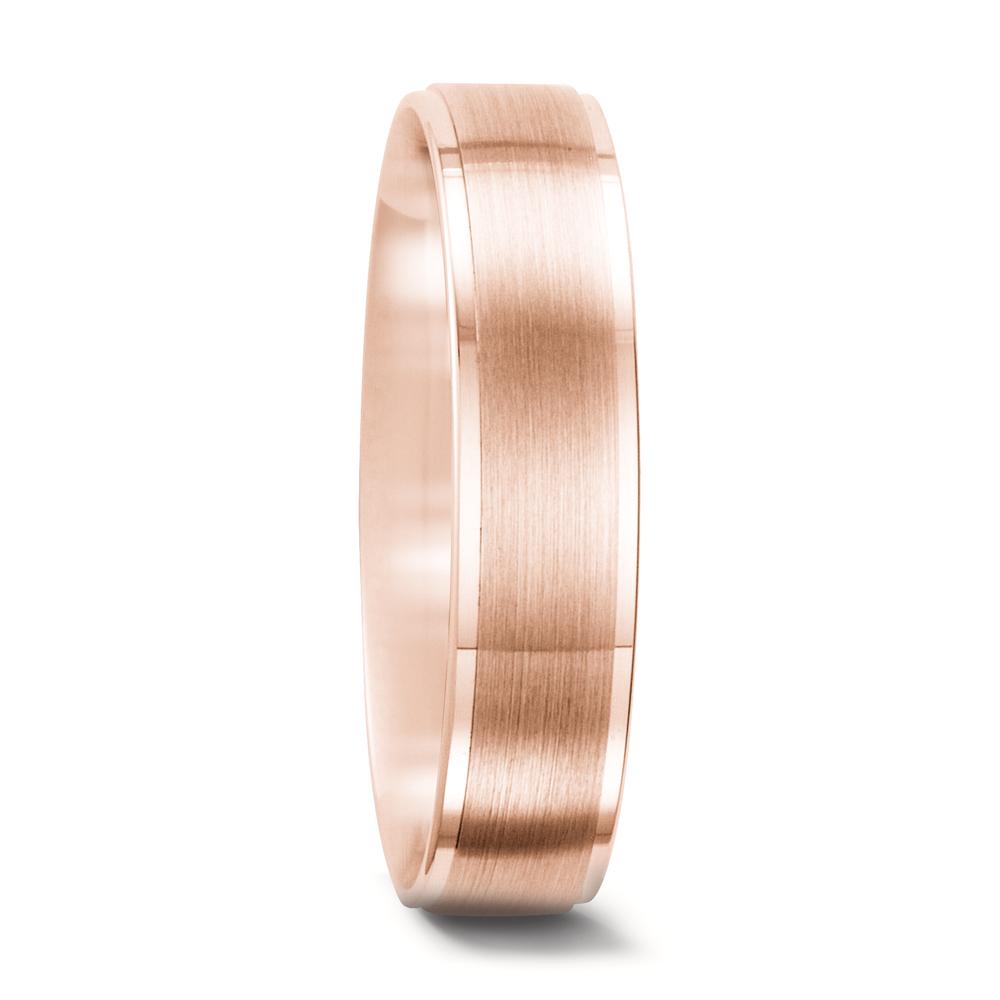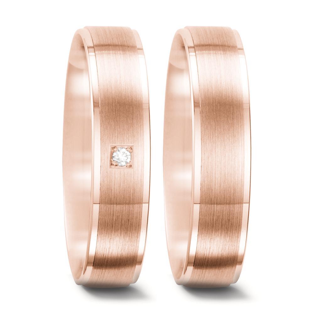 Bague de couple en or rose 375, au design élégant et moderne. Sa finition brossée au centre contraste avec ses bords polis, offrant un rendu raffiné et tendance. Parfait pour symboliser l'amour et l'engagement avec style et délicatesse.