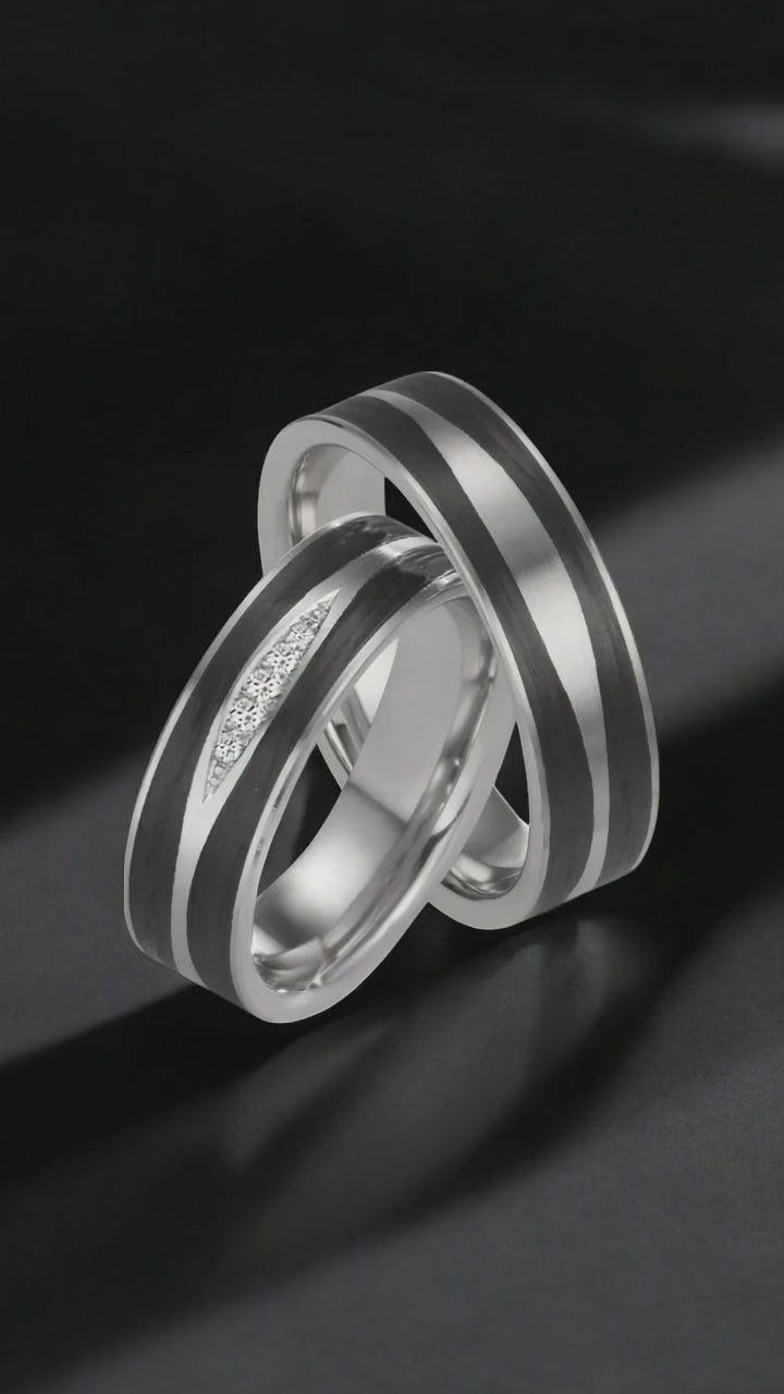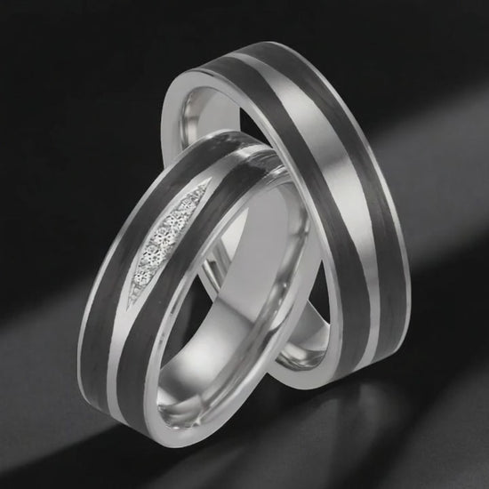 Alliance en platine 950 et carbone, alliant élégance et modernité. Ce modèle unique offre un design sophistiqué avec la robustesse du carbone et l'éclat précieux du platine, idéal pour symboliser un lien fort et durable. Confortable et résistant au quotidien.