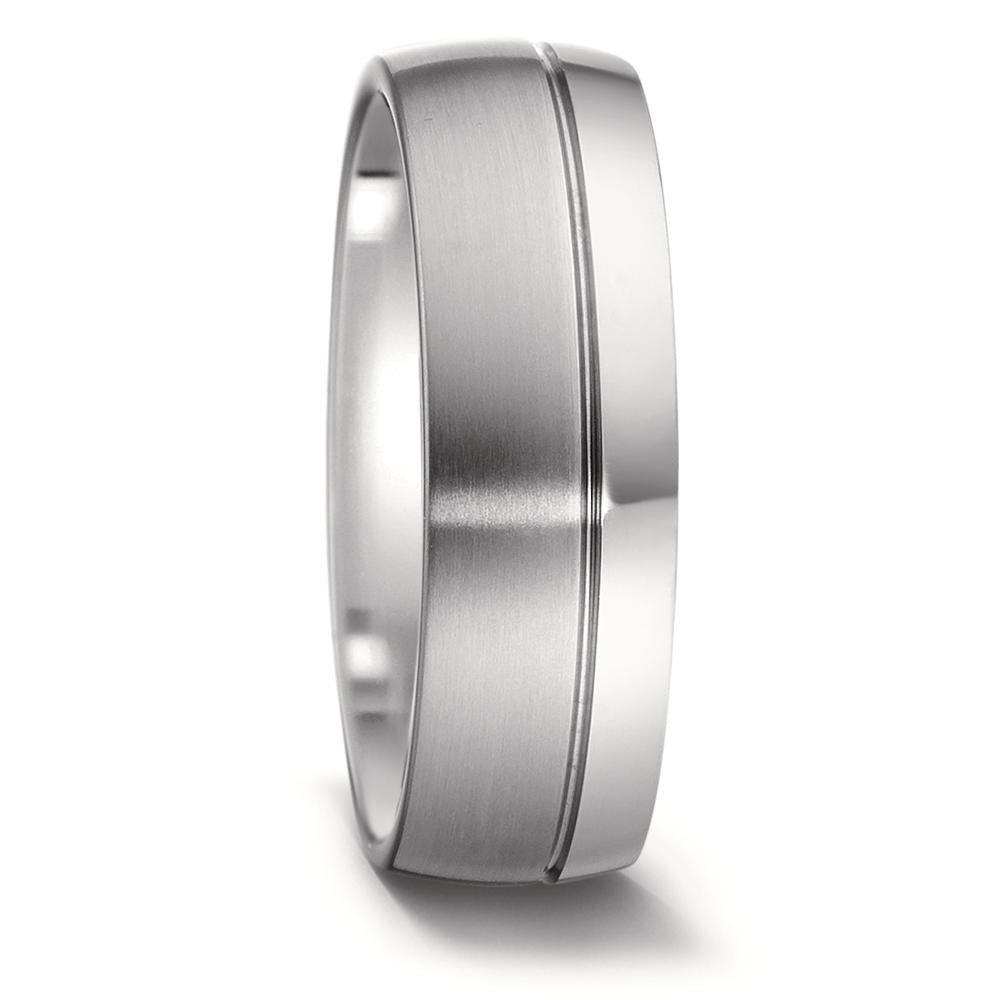 Bague de couple en titane, alliant modernité et robustesse. Son design épuré avec une finition mate et une fine ligne polie au centre symbolise l'équilibre parfait entre élégance et résistance. Idéale pour sceller un engagement durable avec style.