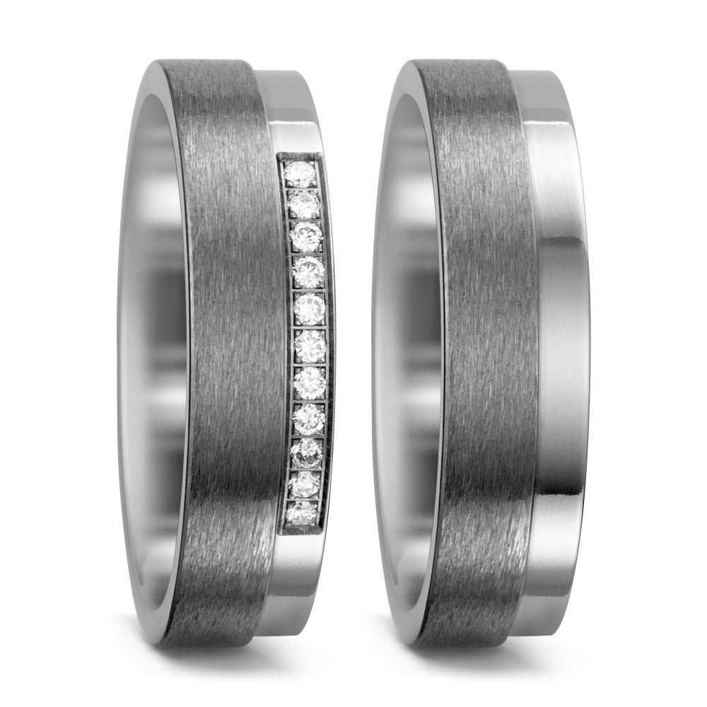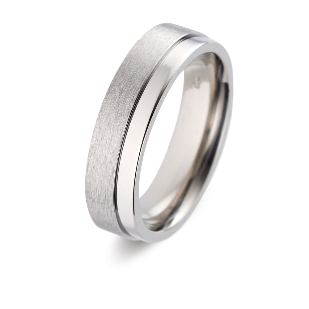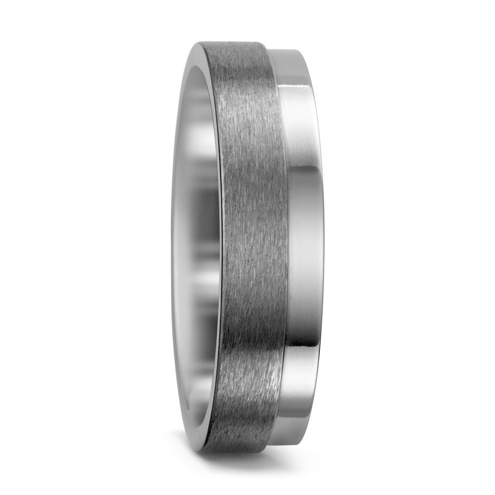 Alliance en titane, alliant robustesse et élégance. Ce modèle associe une finition mate et une bande polie, offrant un design moderne et intemporel. Parfait pour symboliser l'engagement d’un couple avec style et résistance au quotidien.
