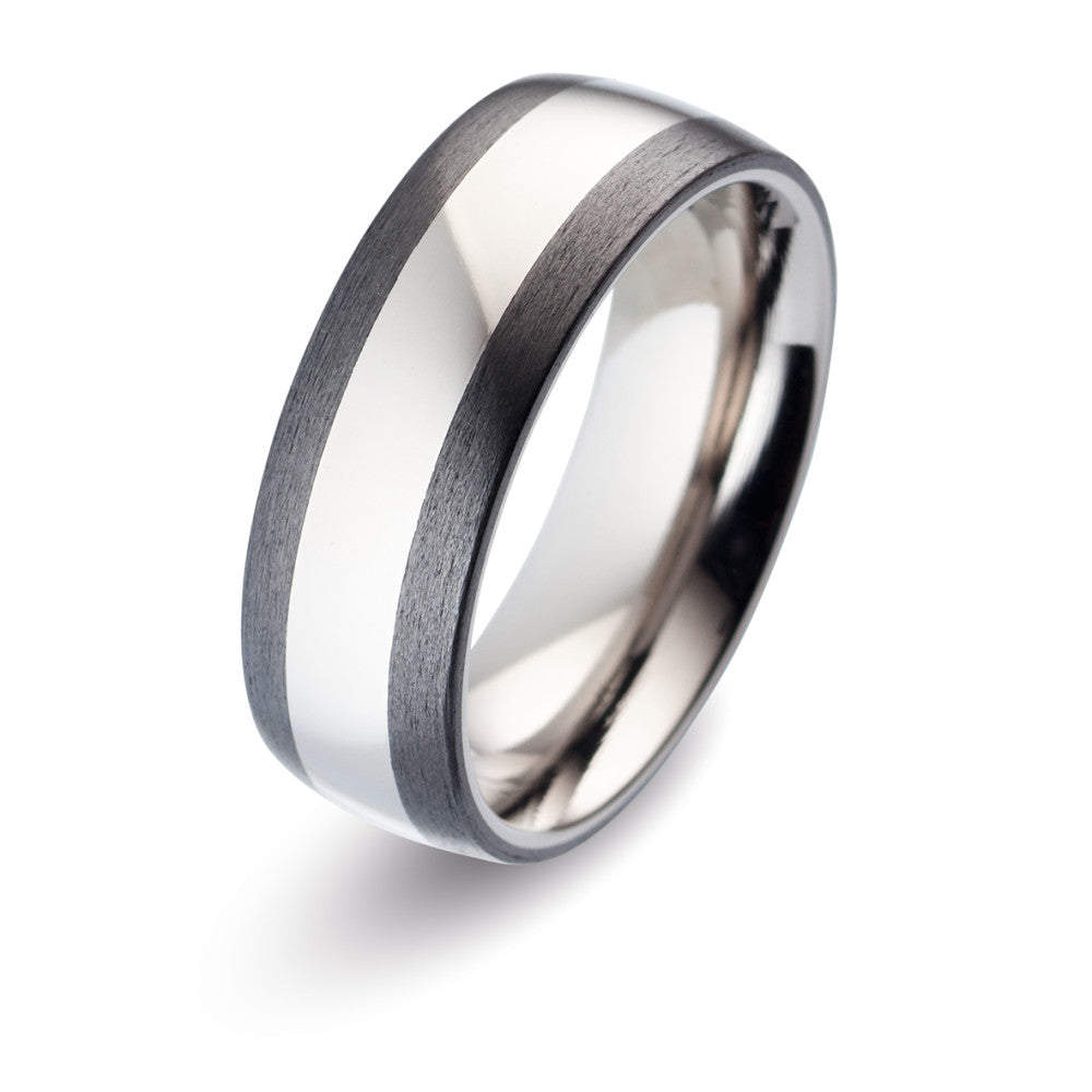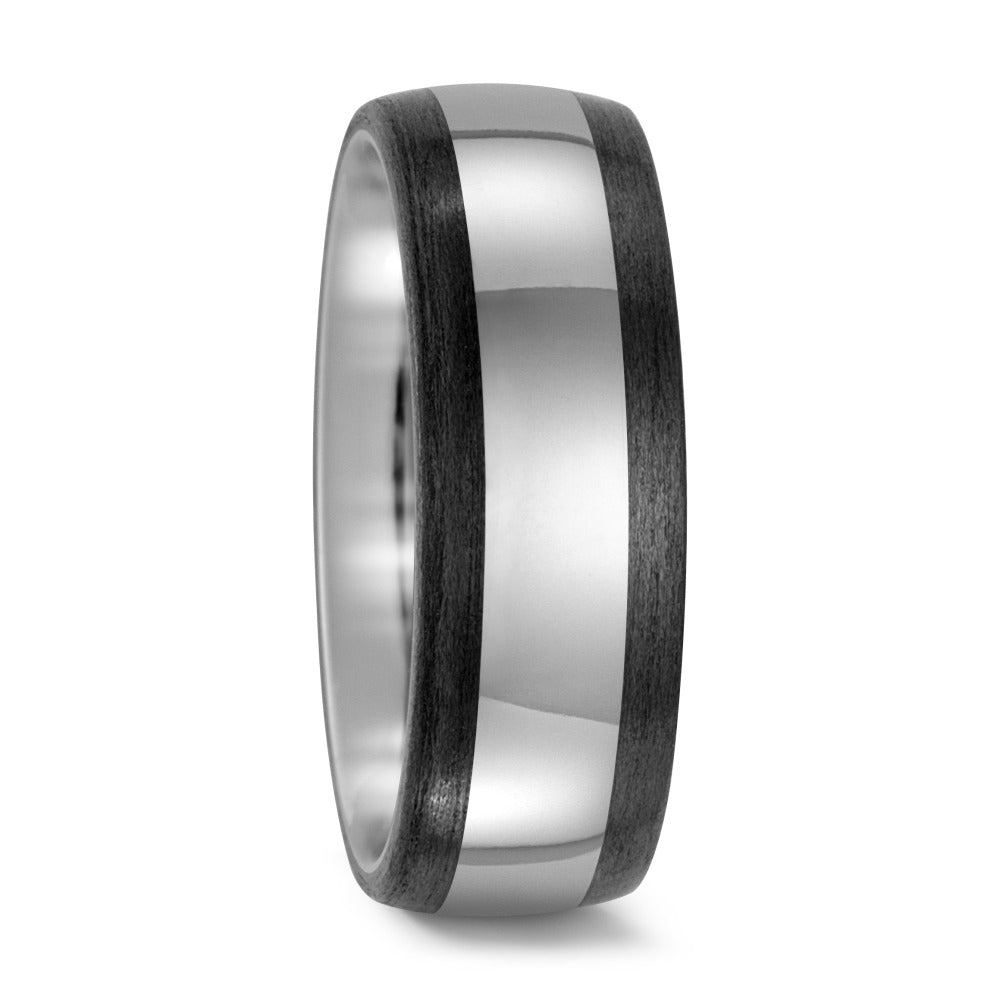 Alliance pour couple en titane et carbone. Élégante et moderne, cette bague allie la résistance du titane à la légèreté du carbone. Parfaite pour symboliser un engagement durable avec un design contemporain et sophistiqué. Confort et style assurés au quotidien.