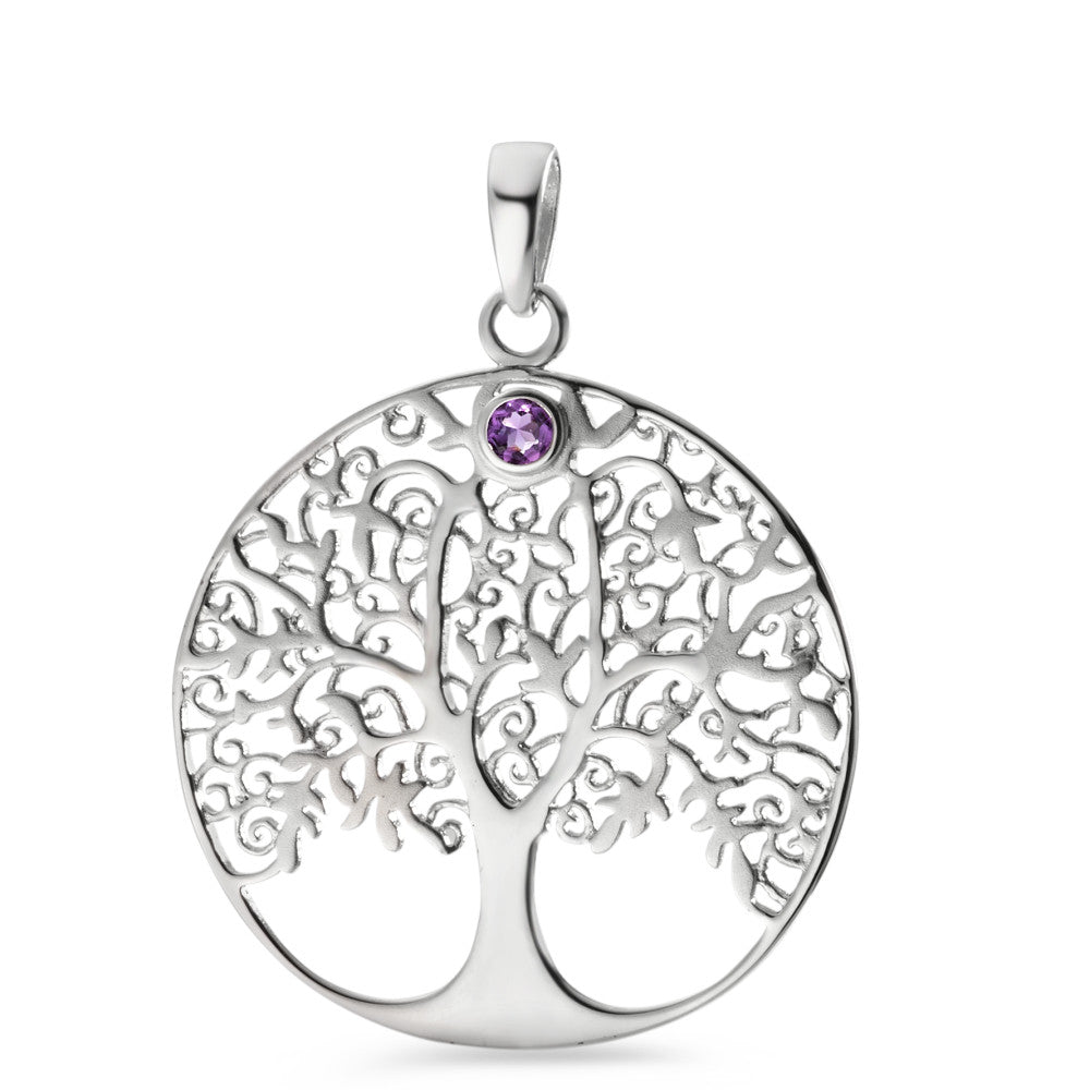 Pendentif pour femme en argent sterling, orné d'un améthyste violet éclatant. Le design délicat représente un arbre de vie, symbole de force et de croissance. Un bijou élégant et intemporel, parfait pour une touche naturelle et spirituelle à votre style quotidien.