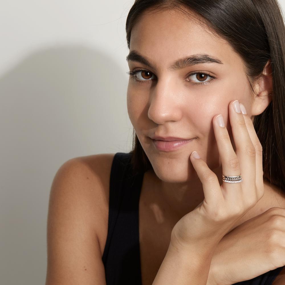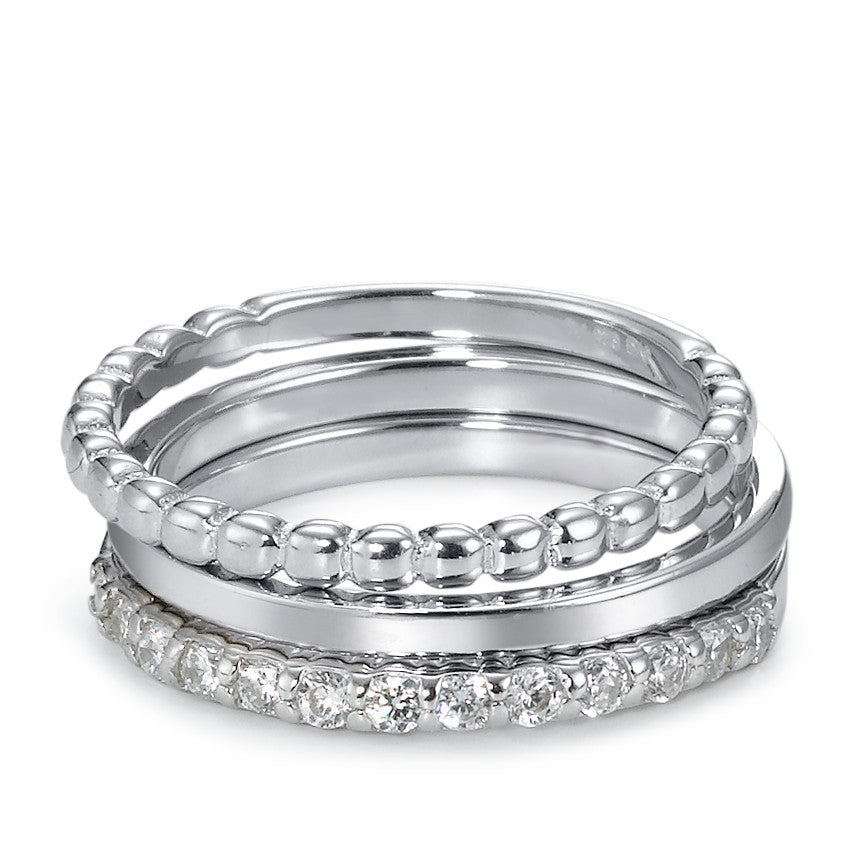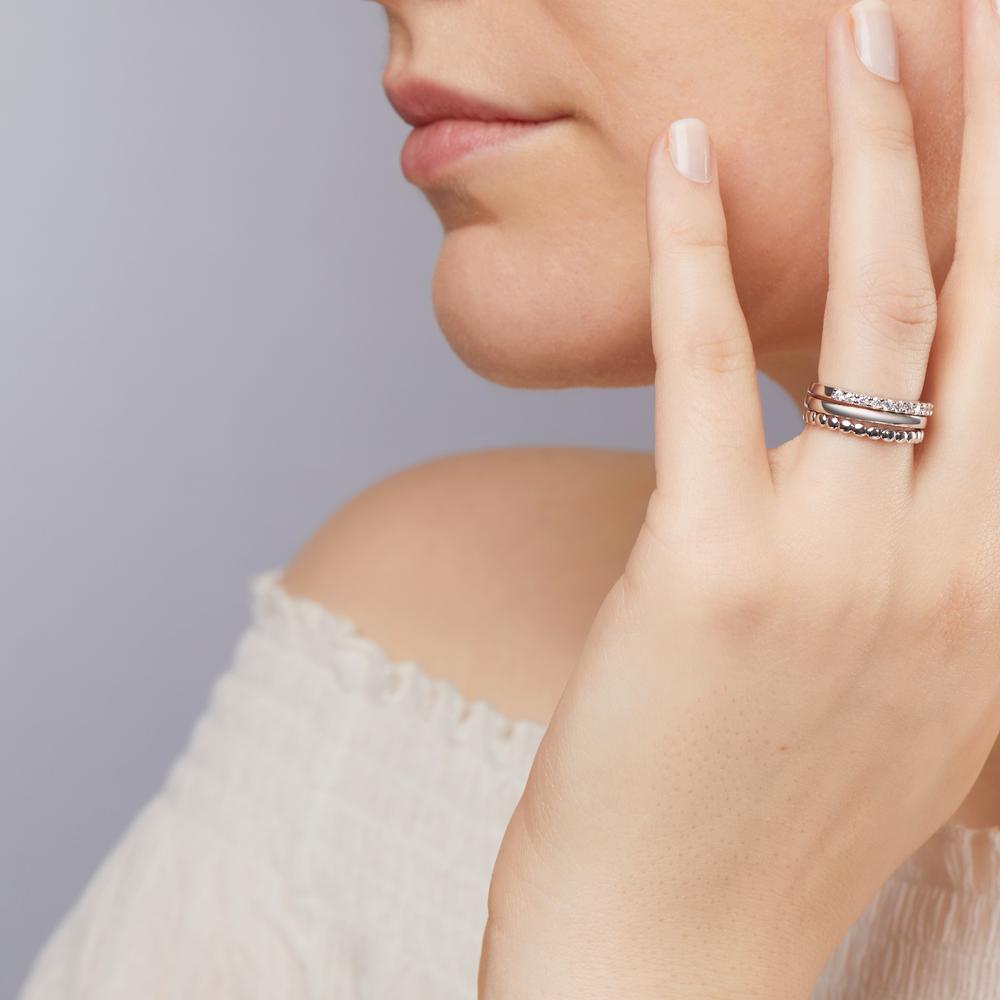 Set de trois bagues pour femme en argent, élégamment conçu avec un anneau lisse, un anneau orné de perles et un anneau serti de zircones étincelantes. Ce trio harmonieux allie simplicité et brillance pour sublimer toutes vos tenues avec délicatesse.