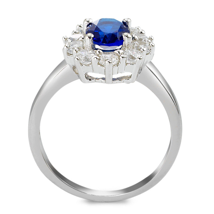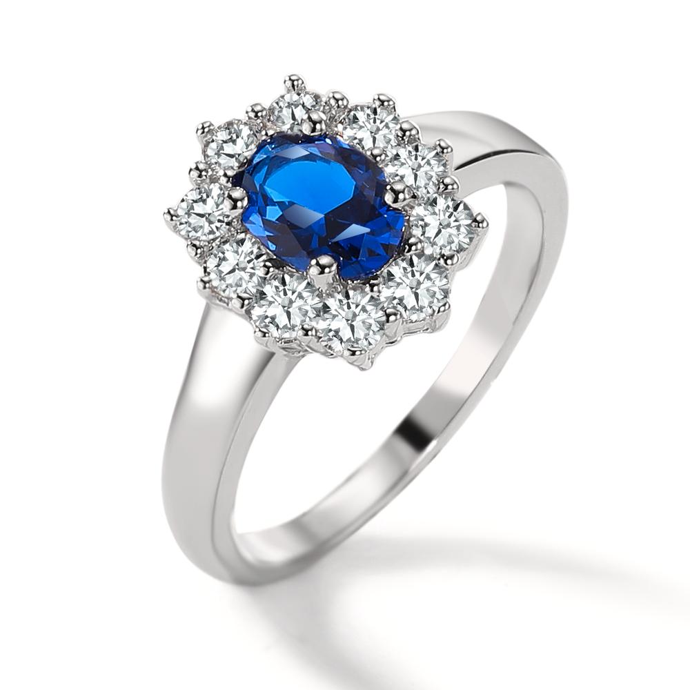 Bague Argent Zircone bleu, ovale, Zircone blanc, 10 Pierres Rhodié