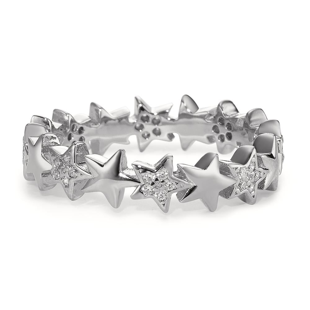Bague femme en argent ornée d'étoiles délicates, certaines serties de zirconia étincelants. Un bijou élégant et moderne qui apporte une touche de lumière à votre main. Parfaite pour toutes les occasions, cette bague allie finesse et éclat.