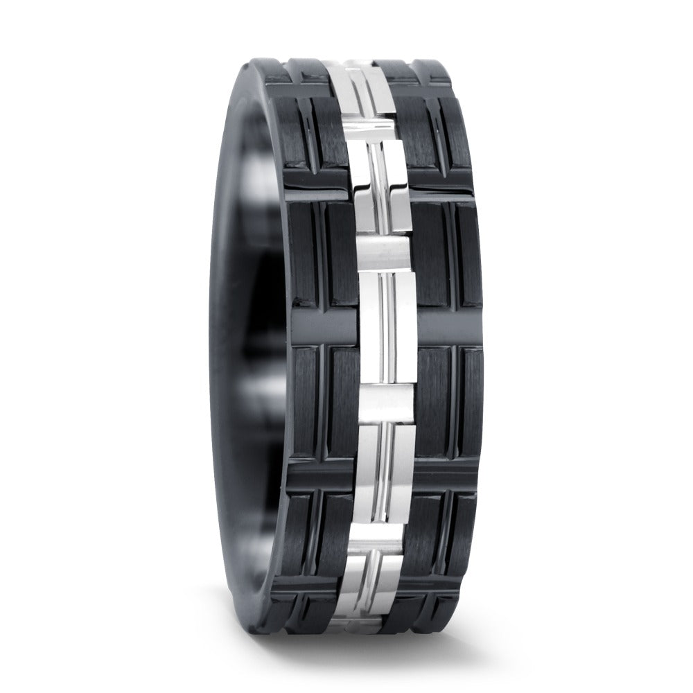 Bague pour homme en céramique noire et tungstène. Design moderne avec motif géométrique, alliant robustesse et élégance. Confortable et résistante aux rayures, cette bague est parfaite pour un style masculin affirmé au quotidien.