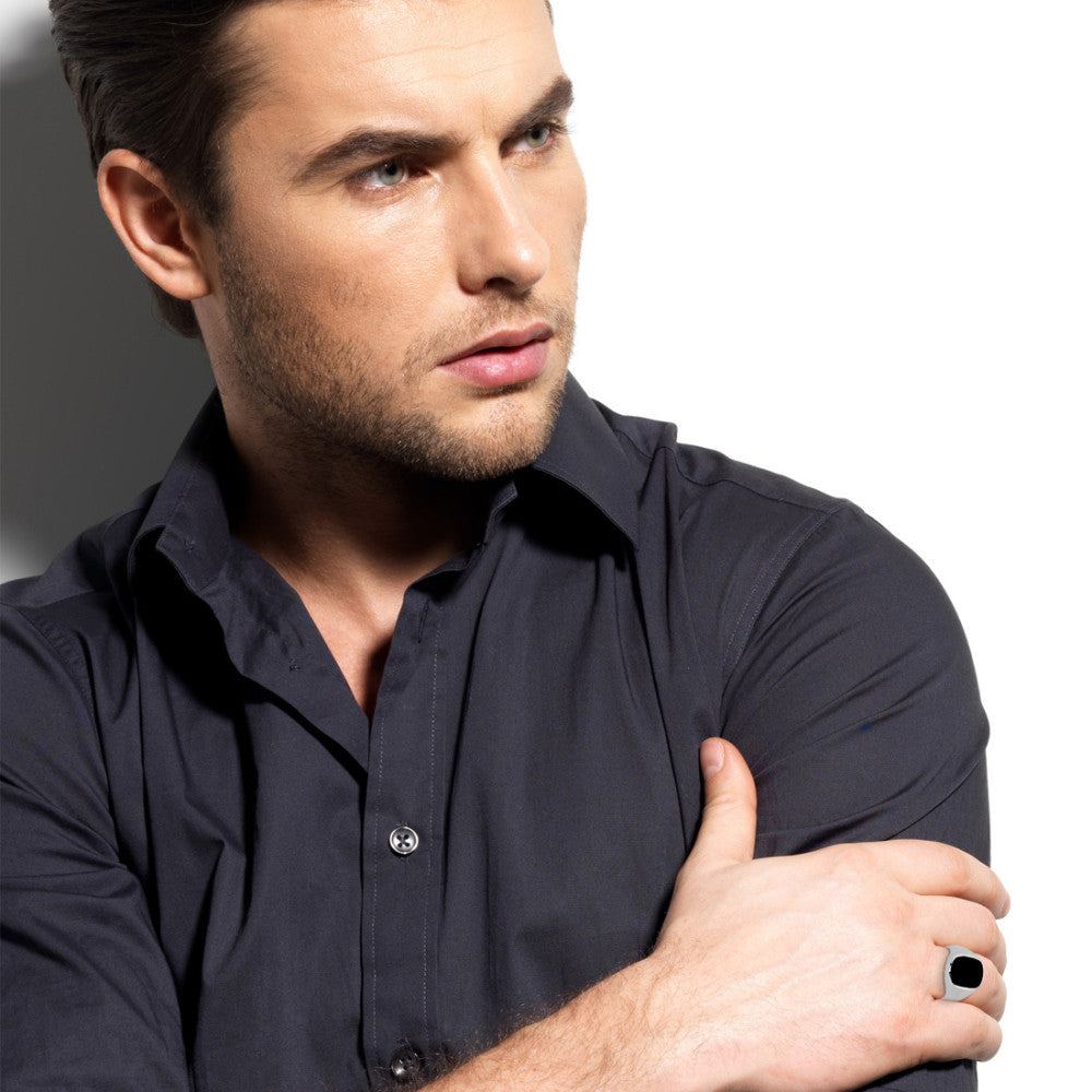 Bague pour homme en argent massif, ornée d’un onyx noir élégant. Ce design classique et sobre apporte une touche de raffinement à votre style quotidien. Parfaite pour une allure distinguée, cette bague allie robustesse et élégance avec finesse.