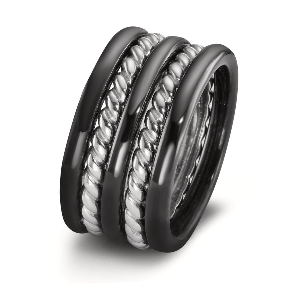Anneau d'appoint pour femme en céramique noire élégante. Ce bijou minimaliste allie robustesse et légèreté, idéal pour un style moderne et raffiné. Parfait à porter seul ou en combinaison avec d'autres bagues pour un look personnalisé et tendance.