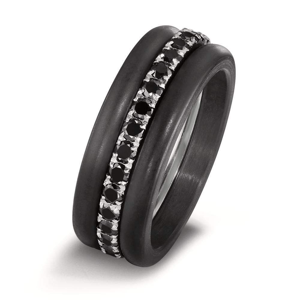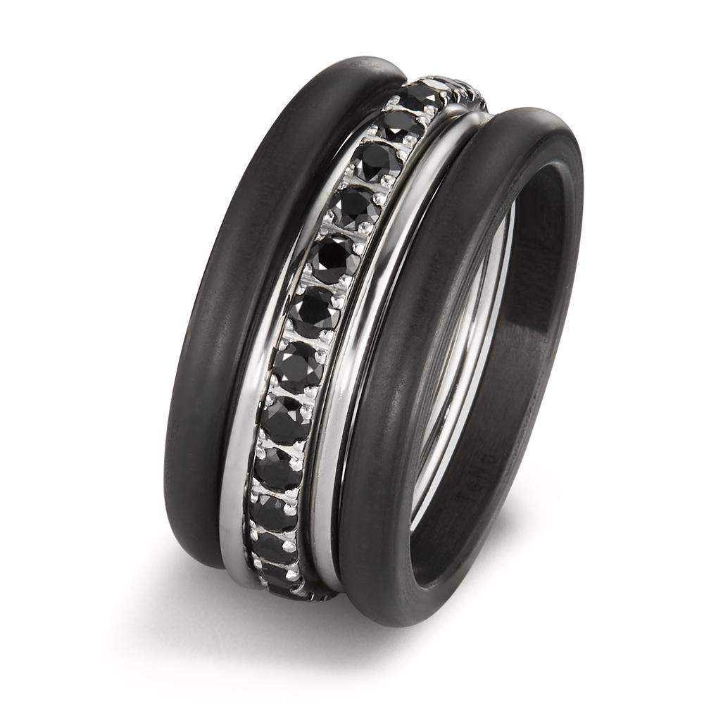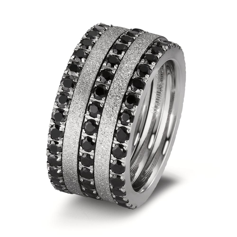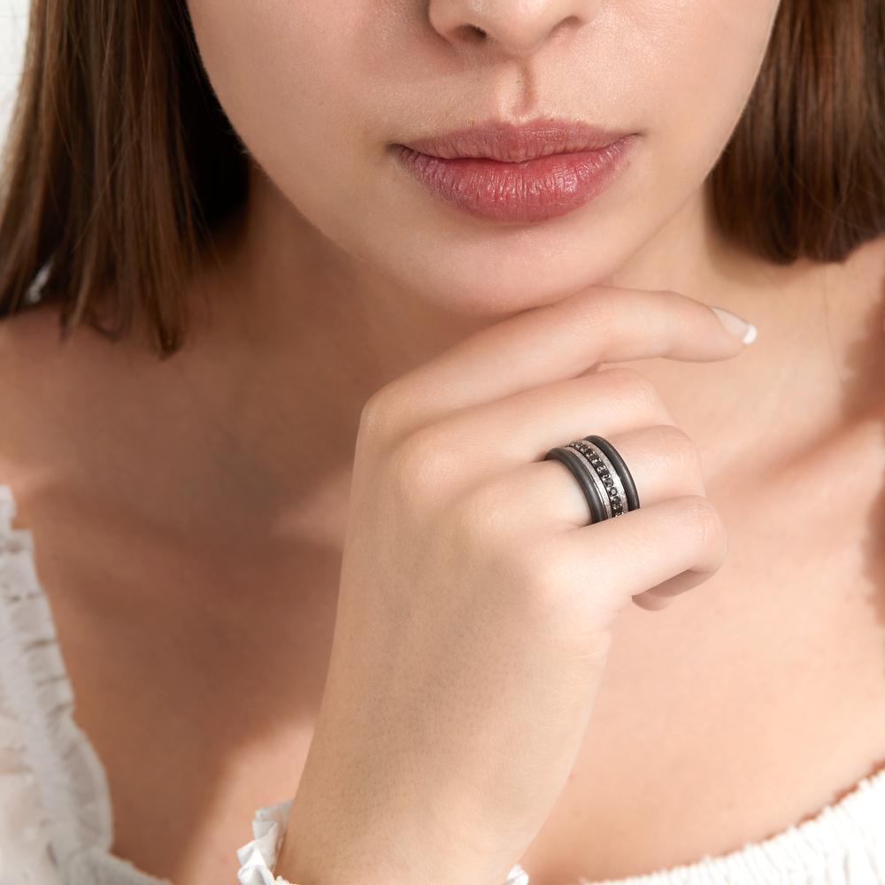 Bague pour femmes en acier inoxydable, ornée de zircones noires scintillantes tout autour. Élégante et moderne, cette bague memory symbolise l’éternité et s’adapte parfaitement à toute occasion, offrant un style raffiné et intemporel. Résistante et facile à porter.