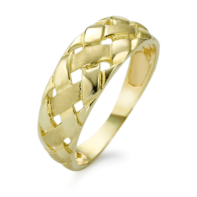 Bague pour femme en or jaune 375 au design tressé élégant. Ce bijou raffiné allie finition mate et brillante pour un style unique et sophistiqué. Parfait pour sublimer toutes vos tenues avec douceur et éclat. Un classique intemporel à porter au quotidien.