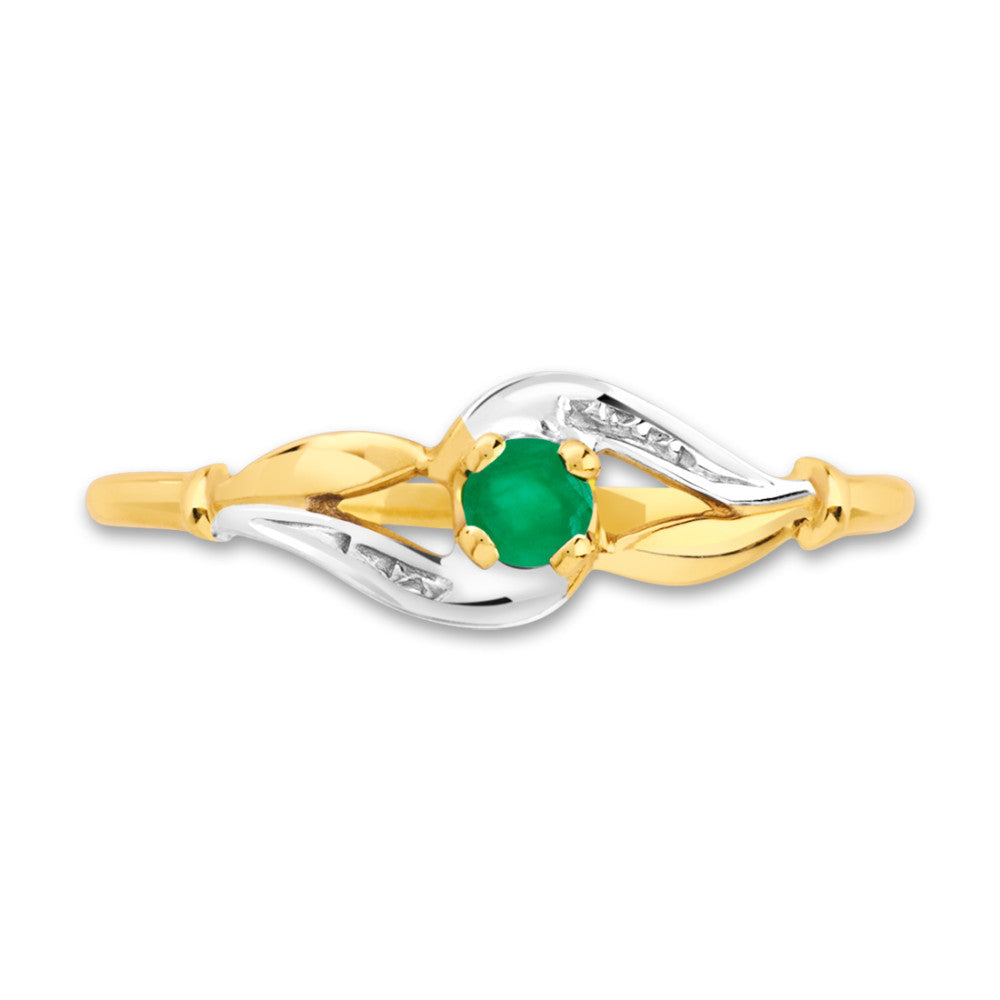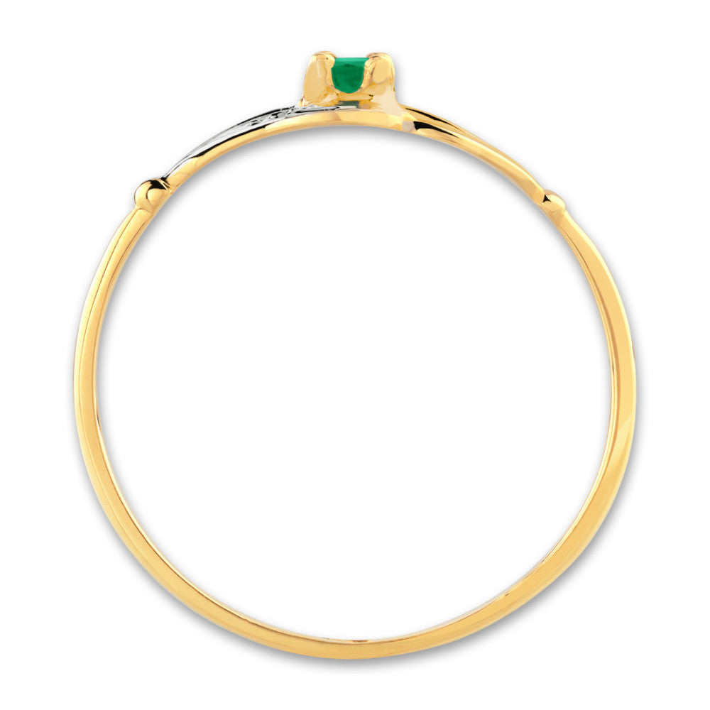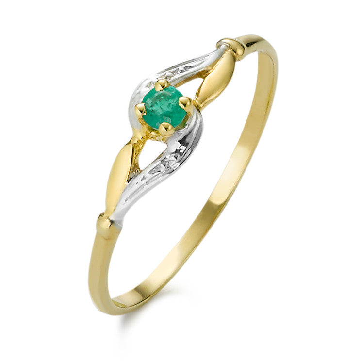 Élégante bague pour femme en or jaune 375, ornée d'une émeraude centrale. Son design raffiné allie un travail délicat de l'or blanc et jaune, apportant une touche sophistiquée et lumineuse. Parfaite pour sublimer votre style avec éclat et finesse.