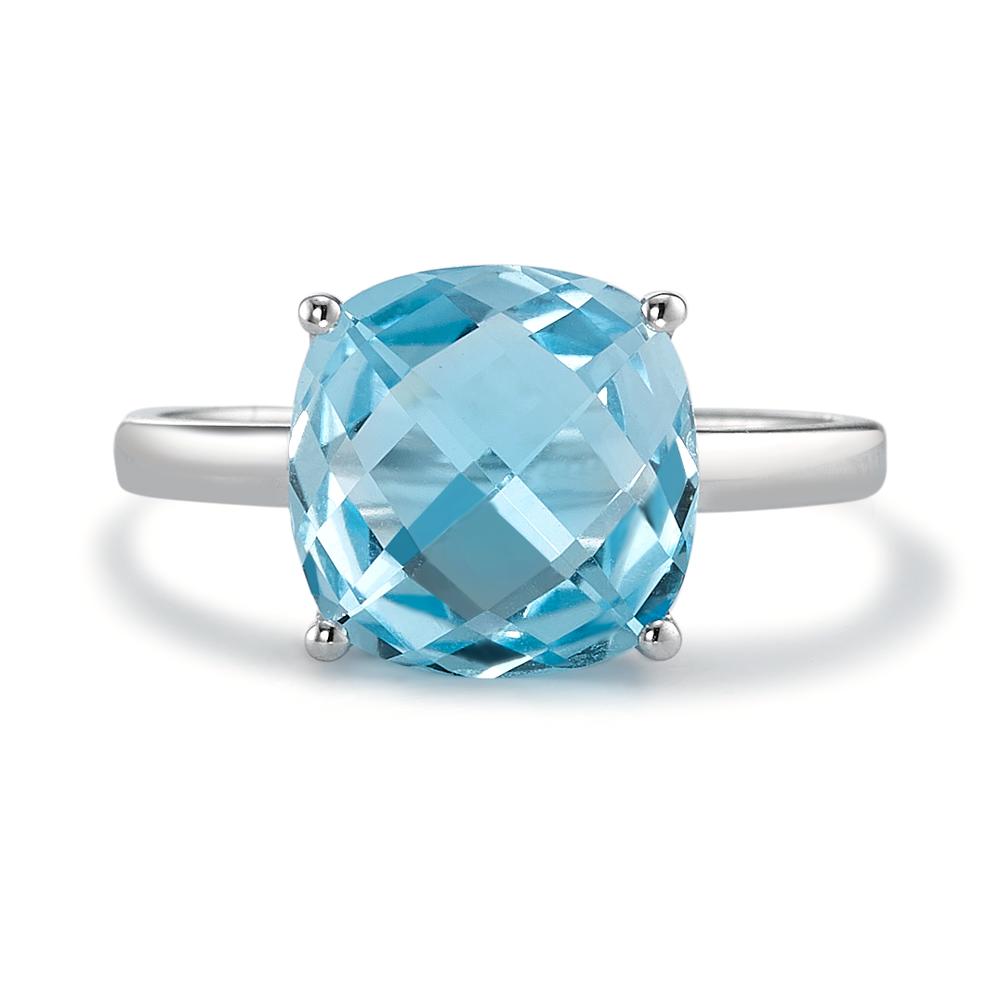 Bague pour femme en or blanc 18 carats (750) ornée d'un topaze bleu vif taillé en coussin. Élégante et raffinée, cette bague apporte une touche de sophistication et de couleur à votre tenue, idéale pour toutes les occasions. Un bijou classique et intemporel.
