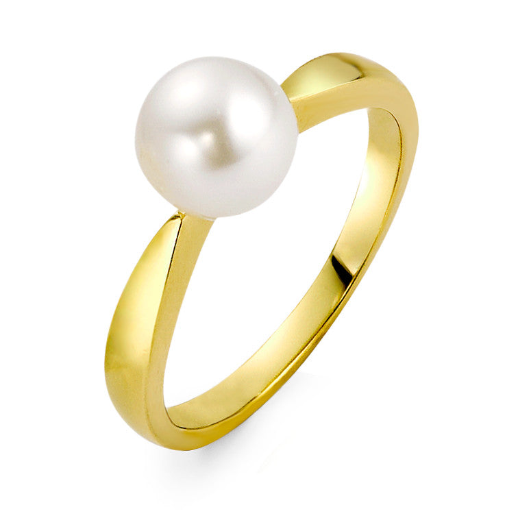 Bague Or jaune 18K perle d'eau douce blanc, 7.5 mm