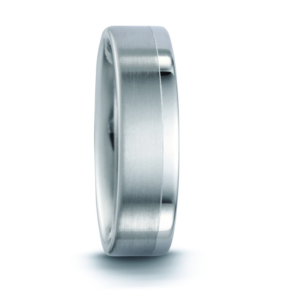 Bague en platine 950 d'une élégance sobre et moderne. Sa finition mi-mate, mi-brillante apporte un contraste subtil et raffiné. Un anneau durable, parfait pour un usage quotidien ou comme alliance, combinant robustesse et style intemporel.