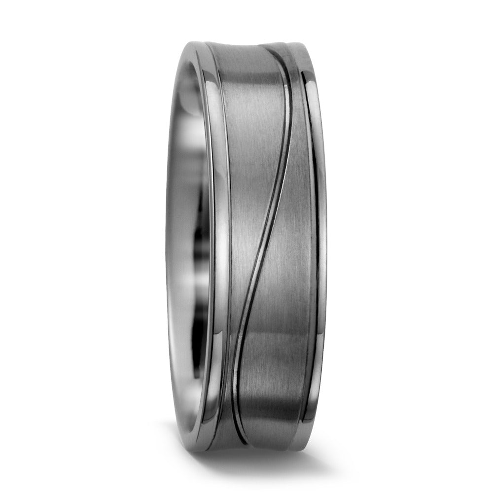 Bague pour homme en titane, alliant robustesse et élégance. Son design moderne avec une finition mate et des lignes gravées sophistiquées en fait un accessoire parfait pour un style contemporain. Légère et durable, idéale pour un port quotidien avec confort.