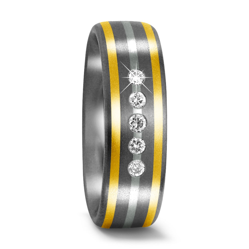 Bague Titane, Or jaune 18K, Platine 950 Diamant 0.05 ct, w-si