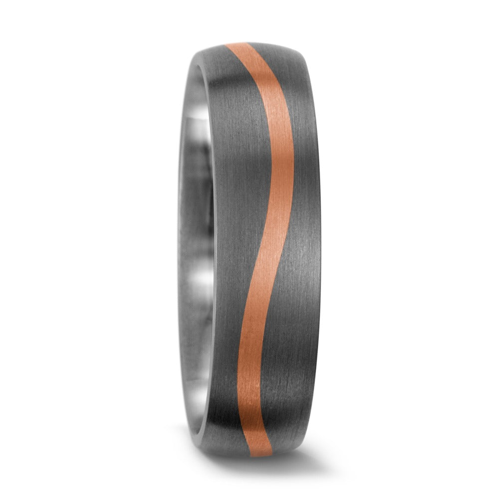 Alliance en titane moderne avec un élégant motif en or rouge 585. Ce bijou allie légèreté et résistance, offrant un confort optimal au quotidien. Son design unique et contemporain en fait une pièce parfaite pour ceux qui recherchent élégance et originalité.