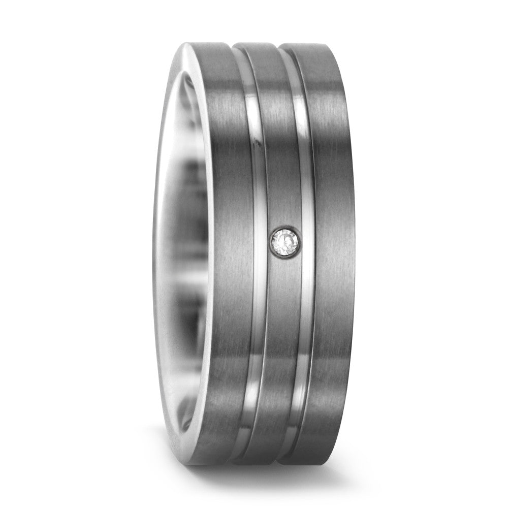 Bague pour femme en titane, alliant robustesse et légèreté. Son design moderne mat est rehaussé par une fine ligne brillante et un élégant oxyde de zirconium, apportant éclat et sophistication discrète. Un bijou parfait pour un style contemporain et raffiné.