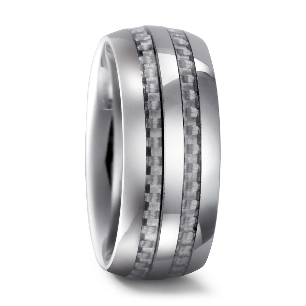 Bague en tungstène élégante et moderne avec deux bandes en fibre de carbone. Son design distinctif allie robustesse et élégance, parfaite pour un style contemporain. Confortable à porter, elle convient à toutes les occasions. Un accessoire masculin et intemporel.