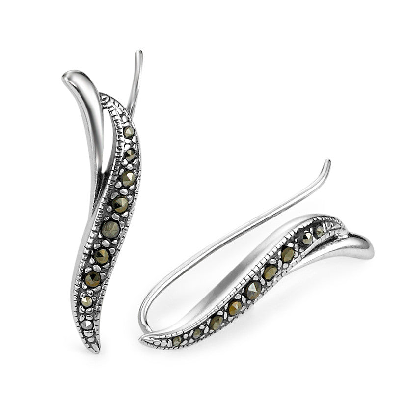 Boucles d'oreilles pour femme en argent fin, ornées de marcassites brillantes. Leur design élégant en forme ondulée met en valeur la finesse et la lumière des pierres. Un accessoire raffiné et intemporel, idéal pour sublimer toutes vos tenues.