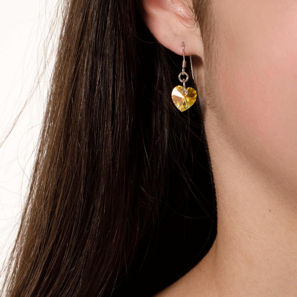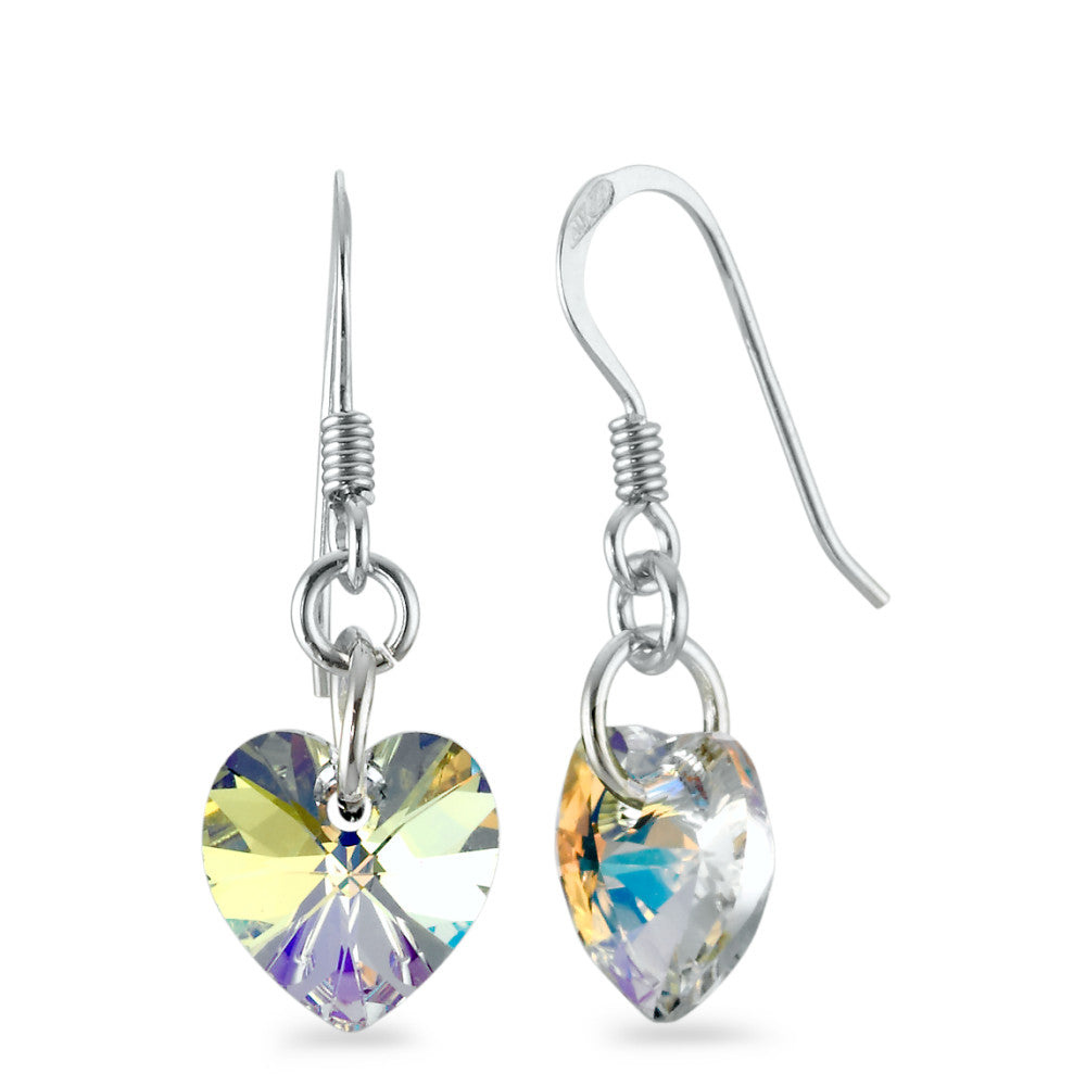 Boucles d'oreilles pour femmes en argent avec pendentifs en forme de cœur scintillants. Leur design élégant et intemporel apporte une touche de lumière et de délicatesse à toutes vos tenues. Parfaites pour un usage quotidien ou pour offrir en cadeau.