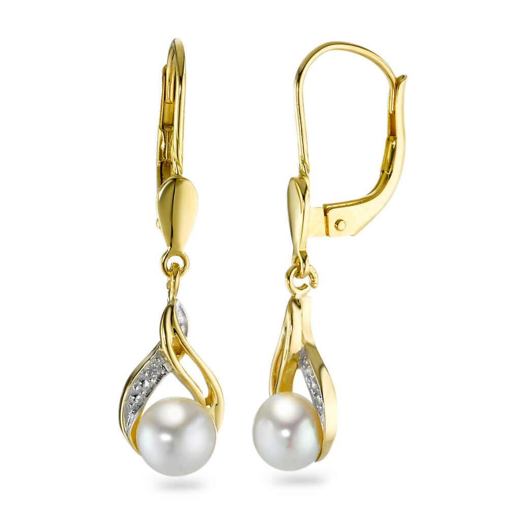 Boucles d'oreilles pour femme en or jaune 18 carats (750), ornées de diamants étincelants et de perles d'eau douce naturelles. Un design élégant et raffiné, parfait pour sublimer toutes vos tenues avec une touche de sophistication et de lumière.