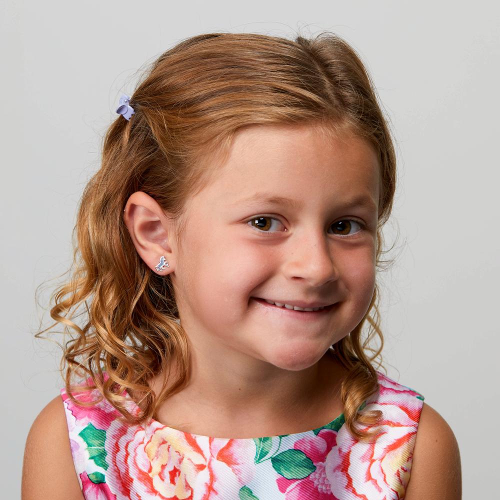 Boucles d'oreilles pour filles en argent sterling, délicatement conçues en forme de cheval élégant. Un bijou charmant et léger, parfait pour les petites passionnées d'équitation, à porter au quotidien ou lors d'occasions spéciales. Un cadeau idéal pour les enfants.