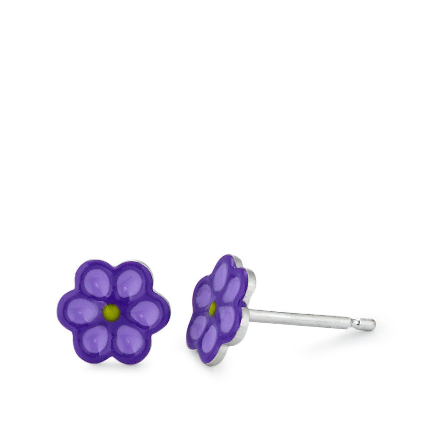 Boucles d'oreilles pour filles en argent, décorées d'une délicate fleur violette. Un bijou charmant et coloré, parfait pour apporter une touche de fraîcheur et de douceur au quotidien des petites filles. Légères et confortables, elles conviennent pour toutes les occasions.
