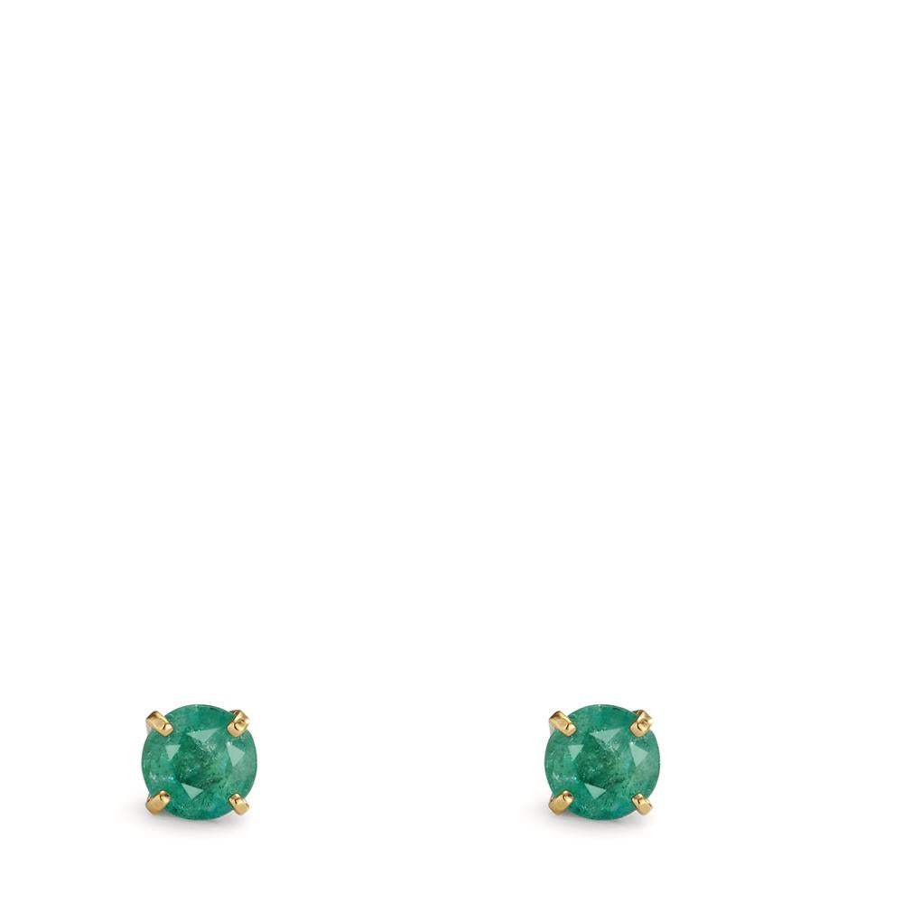 Boucles d'oreilles pour femme en or jaune 375, ornées d'émeraudes rondes d'un vert éclatant. Élégantes et intemporelles, ces puces d'oreilles apportent une touche précieuse et lumineuse à votre tenue quotidienne ou de soirée. Parfaites pour un look sophistiqué.