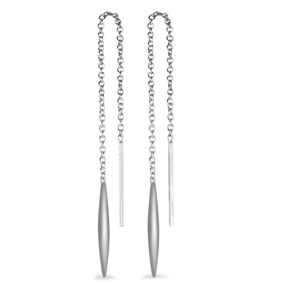 Boucles d'oreilles pour femmes en argent, design élégant à chaîne fine avec pendentif allongé. Faciles à porter grâce à leur système fil passant, elles apportent une touche moderne et raffinée à toutes vos tenues, pour un style chic et discret au quotidien.