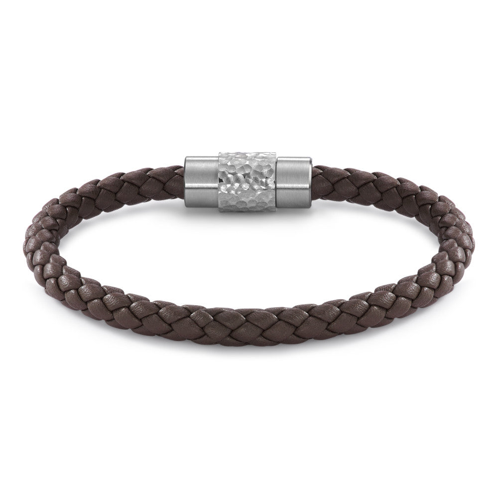 Bracelet pour homme alliant cuir tressé marron et acier inoxydable. Son fermoir texturé apporte une touche moderne et masculine, parfait pour un style décontracté ou élégant. Un accessoire intemporel et robuste, idéal pour sublimer toutes vos tenues.