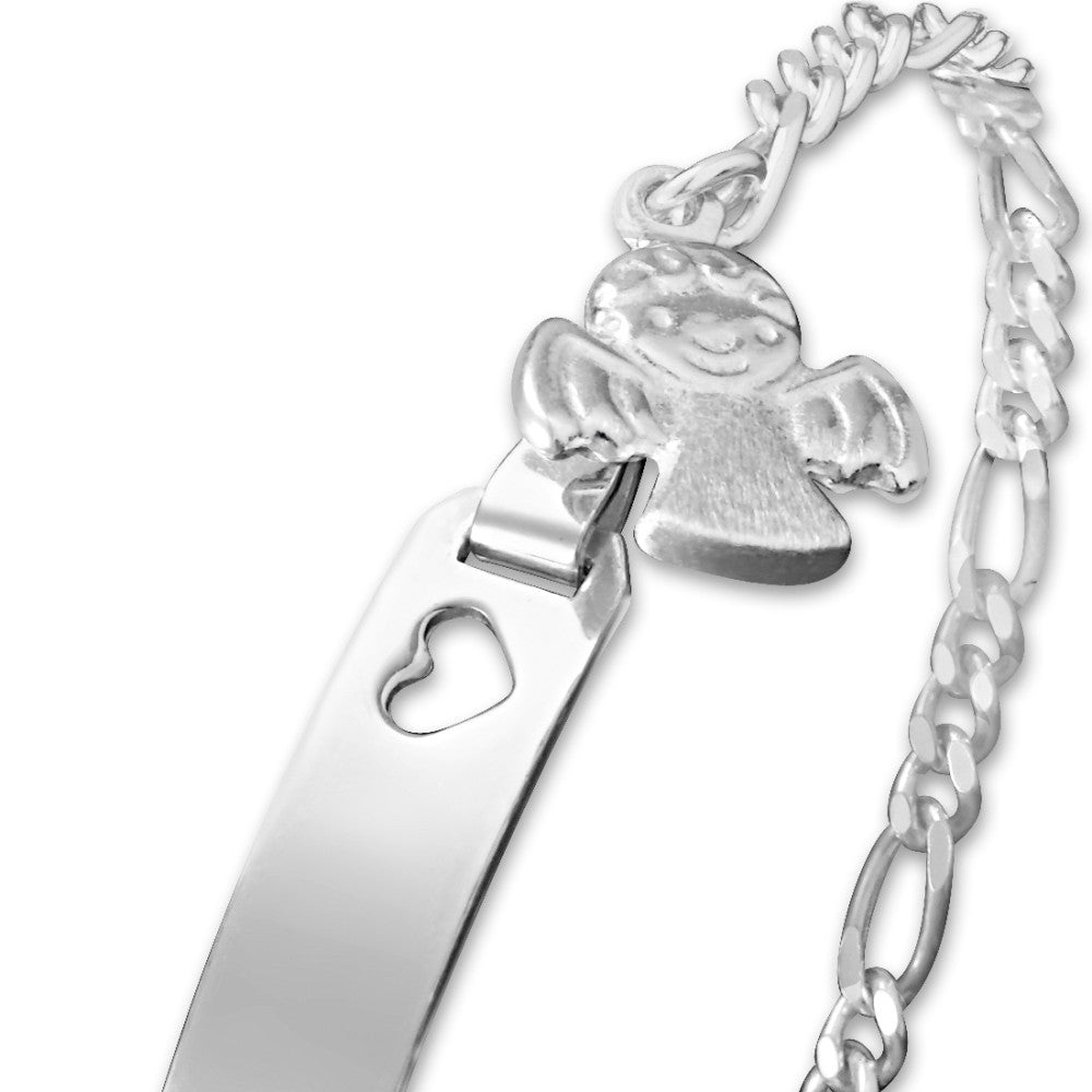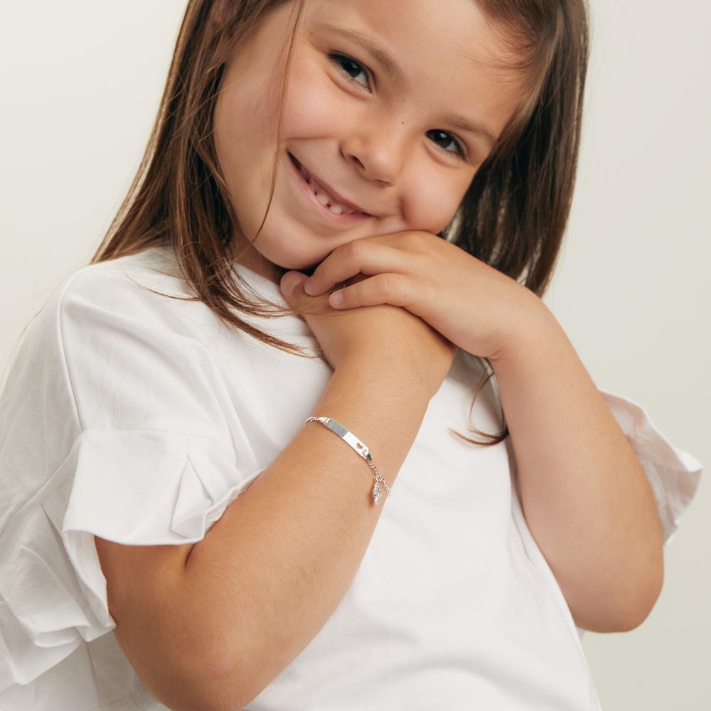 Bracelet bébé en argent, délicatement gravé avec une plaque personnalisable et orné d'un charm ange. Un cadeau symbolique et précieux pour protéger et accompagner votre enfant au quotidien. Design élégant et sécurisé, parfait pour célébrer les premiers moments de vie.