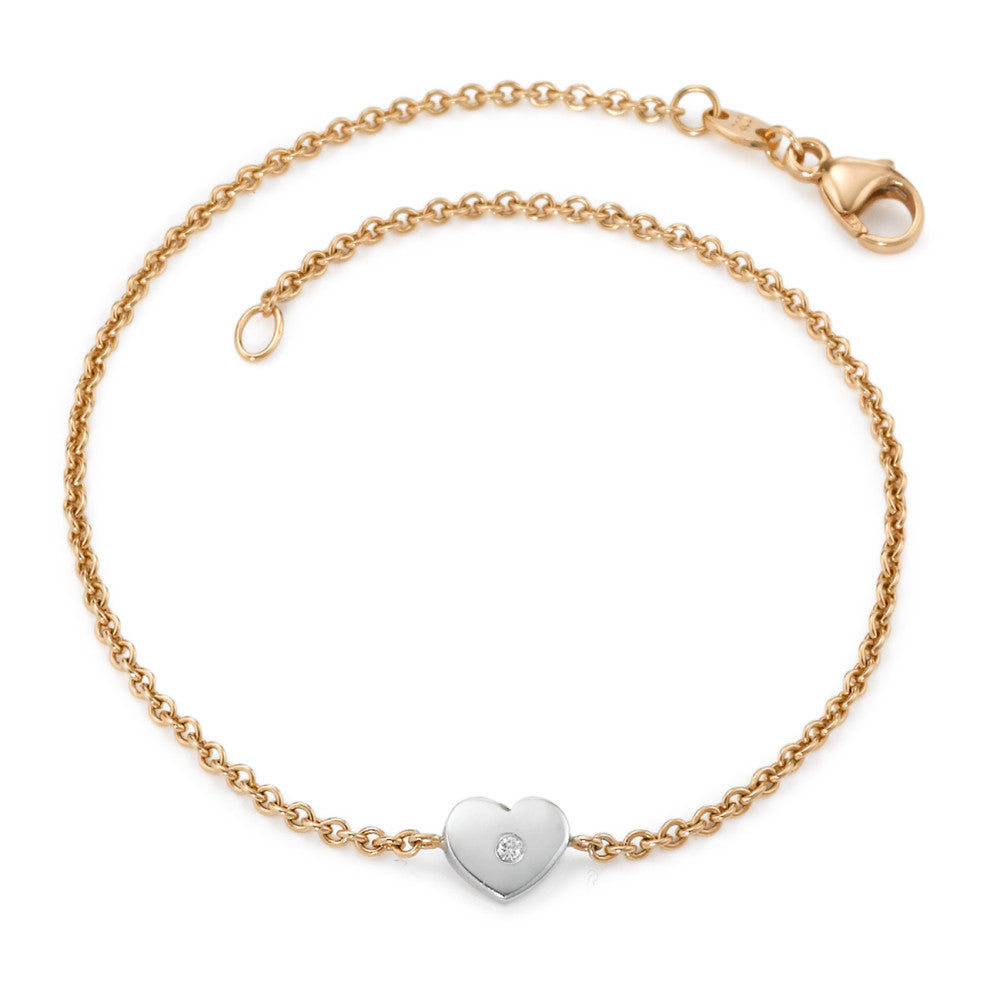 Bracelet pour femme en or 750 rouge et or blanc 750, orné d'un diamant élégant au centre d’un cœur délicat. Ce bijou raffiné allie douceur et brillance pour sublimer chaque poignet avec une touche de romantisme et d’élégance intemporelle.