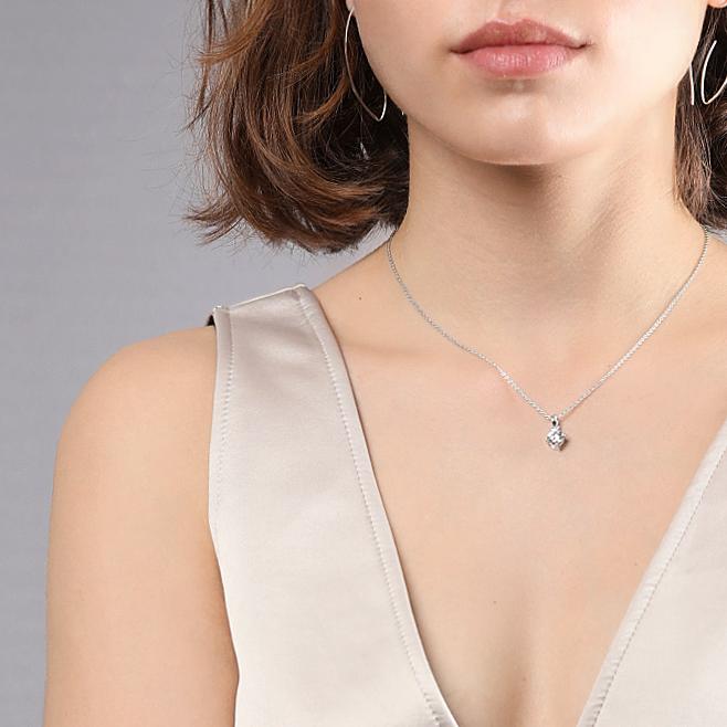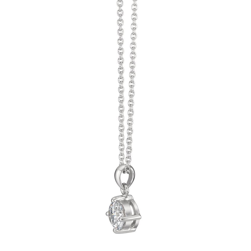 Chaînette avec pendentif Argent Zircone blanc, rond, 6 mm Rhodié 40-45 cm