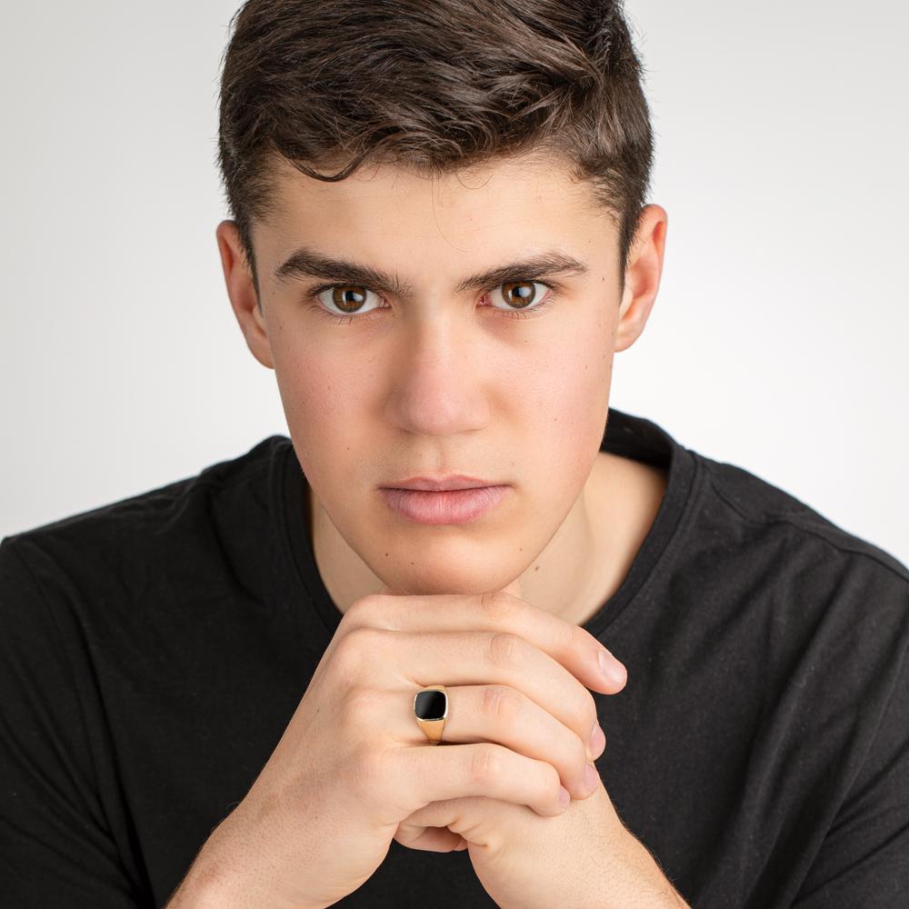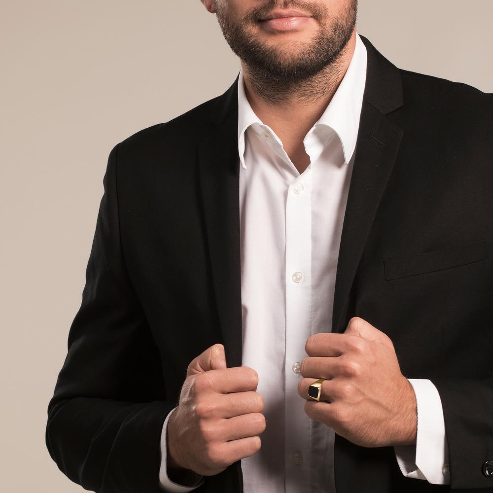 Bague homme en or jaune 375, ornée d’un onyx noir élégant. Un design classique et masculin, parfait pour une touche sophistiquée au quotidien ou en soirée. Allie qualité, raffinement et robustesse pour un style intemporel.