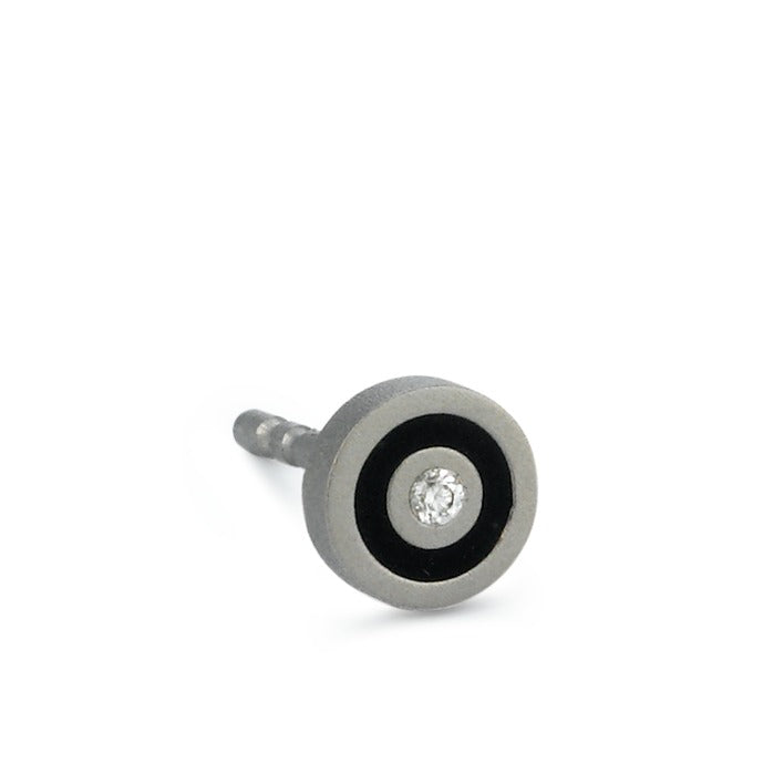 Boucle d'oreille pour homme en titane, ornée d'un diamant central étincelant. Design moderne avec un cercle noir autour, offrant une élégance sobre et contemporaine. Parfaite pour un style raffiné au quotidien ou pour une occasion spéciale. Légère et résistante, elle assure un confort optimal.