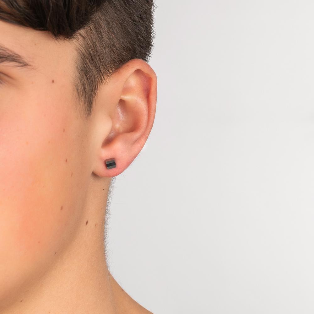 Clou d'oreille pour homme en acier inoxydable. Design moderne et sobre avec un motif noir central, idéal pour un look élégant et masculin au quotidien. Résistant à la corrosion, ce bijou assure confort et durabilité. Vendu à l'unité.