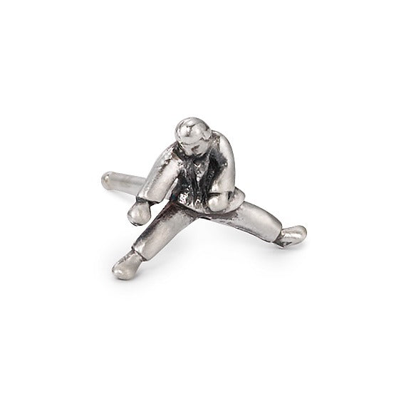 Boucle d'oreille pour homme en argent, représentant une silhouette de karaté en pleine action. Ce bijou fin et original est parfait pour les passionnés d'arts martiaux souhaitant afficher leur style avec discrétion et élégance. Livré à l'unité.