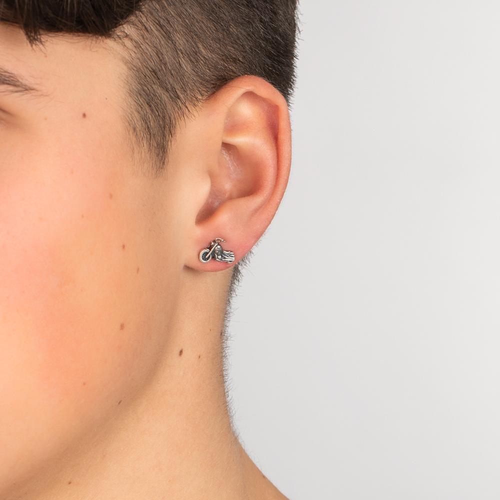 Boucle d'oreille pour homme en argent, modèle moto. Ce clou d'oreille unique allie style et originalité, parfait pour les passionnés de motos. Fabriqué en argent de haute qualité, il apporte une touche audacieuse et masculine à votre look quotidien.