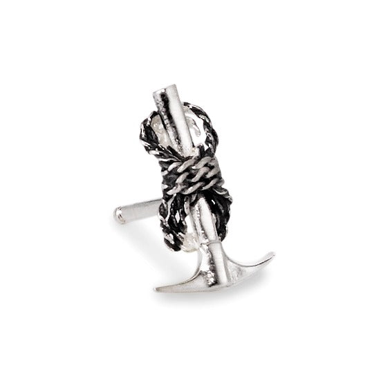 Boucle d’oreille pour homme en argent, représentant un piolet de glace avec un détail de corde enroulée. Un bijou original et élégant, parfait pour les amateurs d’alpinisme et de style unique. Vendu à l’unité, ce clou d’oreille allie robustesse et design raffiné.