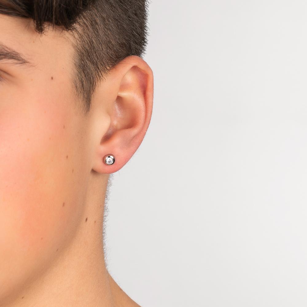 Clou d'oreille pour homme en argent massif orné d'un zirconium brillant. Design élégant et sobre, idéal pour un look moderne et raffiné. Livré à l'unité, ce bijou allie qualité et style pour sublimer votre oreille au quotidien.