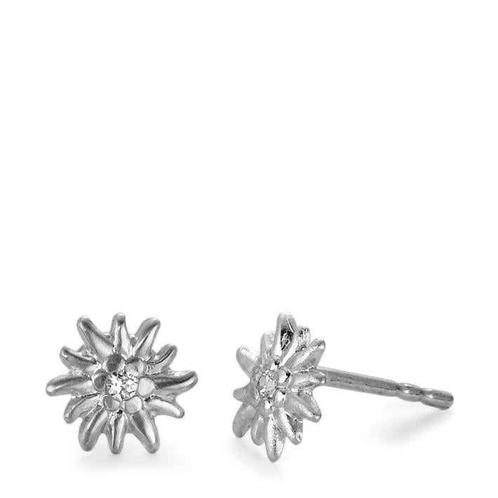 Boucles d'oreilles pour femme en argent fin, ornées de zirconiums étincelants en forme d'edelweiss. Un design délicat et élégant, parfait pour un style raffiné au quotidien ou une touche de charme pour vos occasions spéciales. Légères et confortables à porter.
