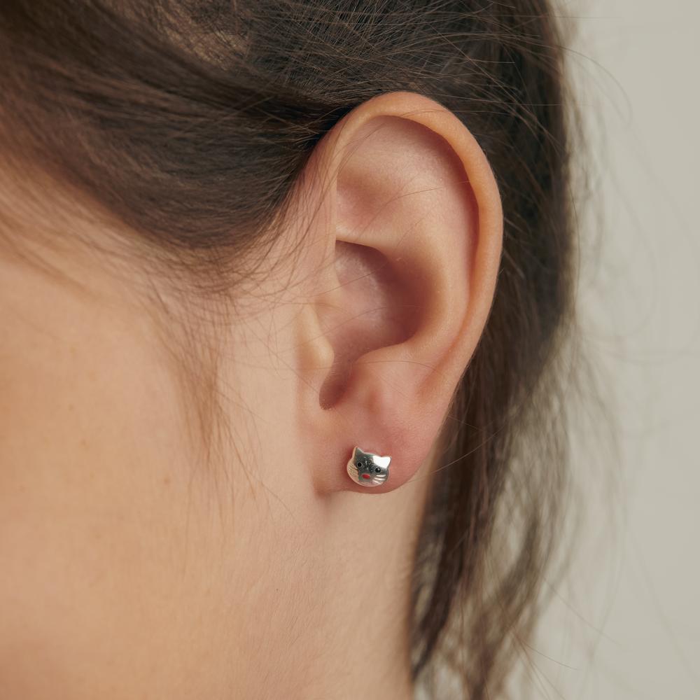 Clous d'oreilles Argent Rhodié Chat