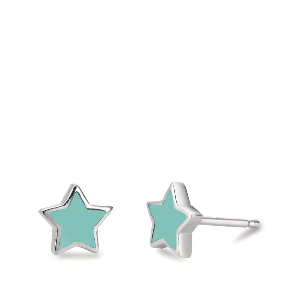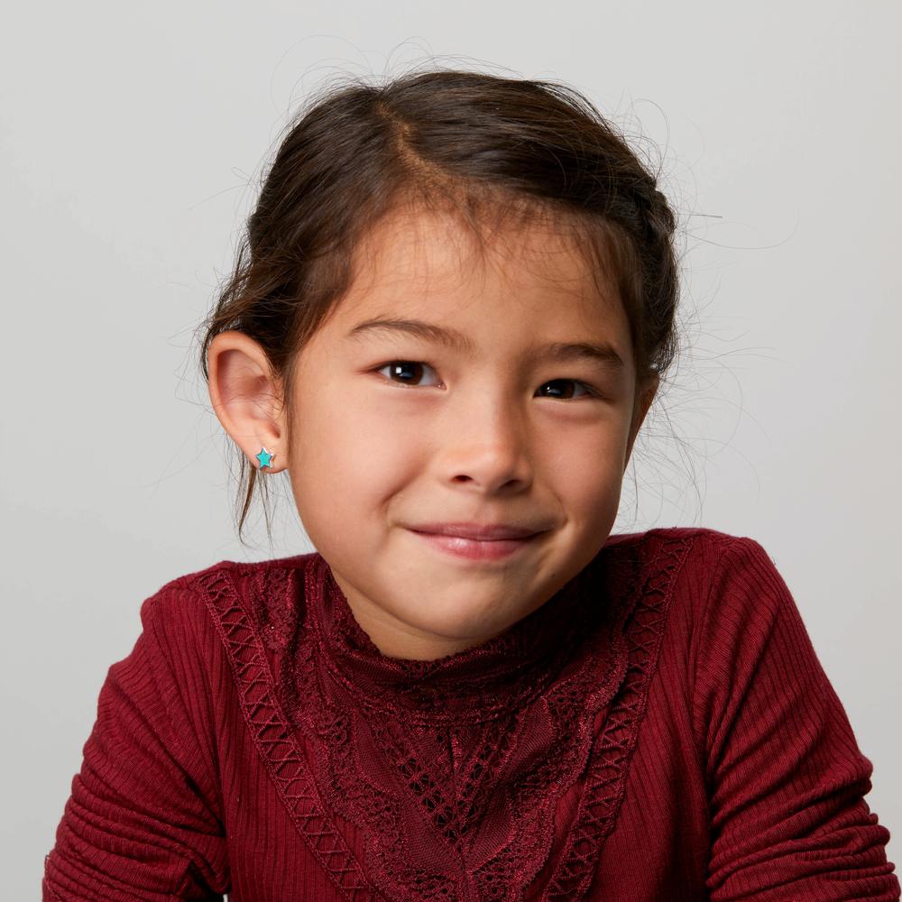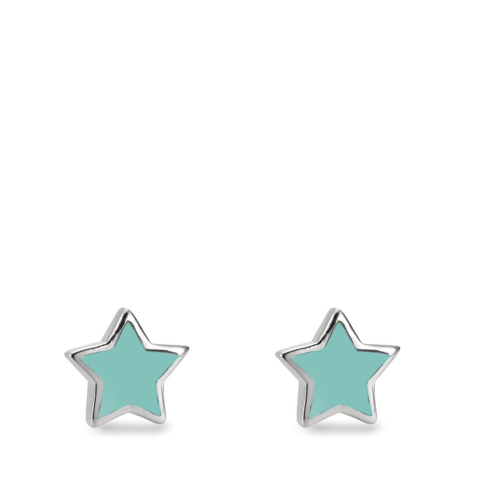 Boucles d'oreilles pour fille en argent, ornées d'une étoile en pierre synthétique turquoise. Un bijou délicat et charmant, parfait pour illuminer le quotidien des plus jeunes avec une touche d'éclat et de fantaisie. Design simple et confortable à porter.