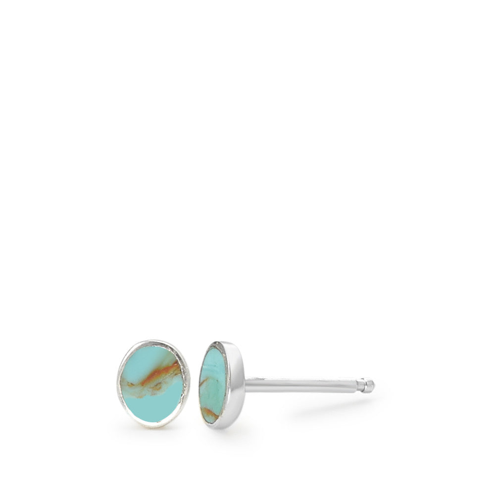 Boucles d'oreilles en argent avec pierre turquoise naturelle, de forme ronde et finition élégante. Ces clous d'oreilles apportent une touche de couleur douce et un style raffiné, parfaits pour un usage quotidien ou des occasions spéciales. Léger et confortable à porter.