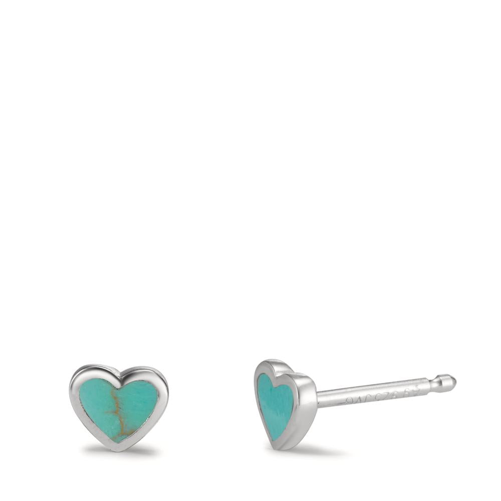 Clous d'oreilles Argent Turquoise turquoise émaillé Coeur