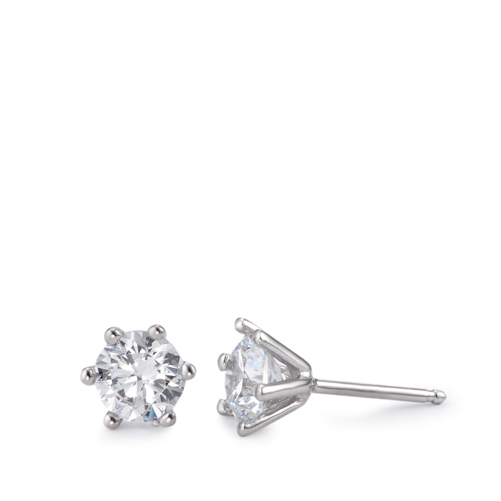 Clous d'oreilles Argent Zircone 2 Pierres Rhodié Ø6 mm